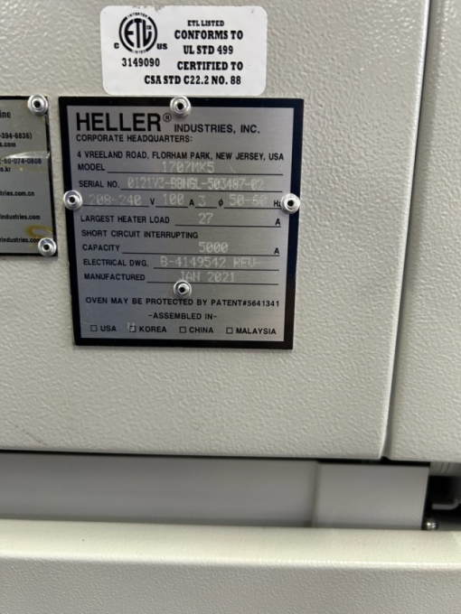 2021 HELLER 1707 MK5 REFLOW OVEN (ONLY 3,700 HOURS!)