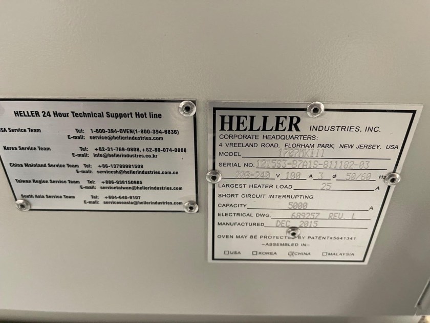 2021 HELLER 1707 MK5 REFLOW OVEN (ONLY 3,700 HOURS!)